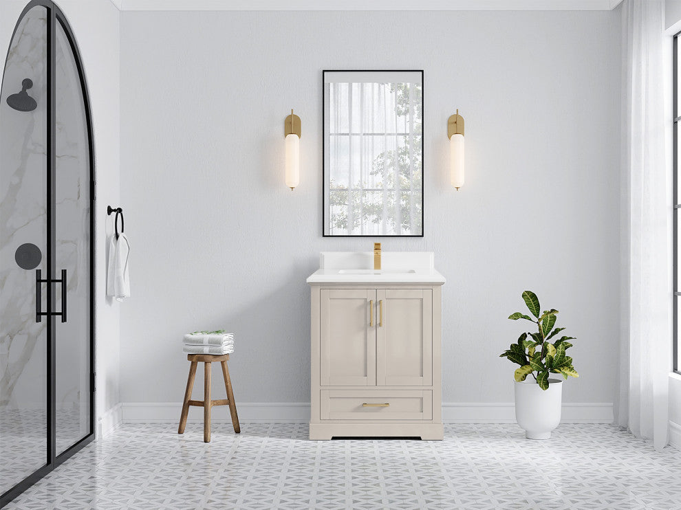 Boston 30" Single Sink Bath Vanity in Fine Grain 1.5" White Quartz