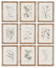 In a soft sepia tone, this set of nine botanicals is an elegant way to dress the wall. Finished off with simple whitewash wood frames, it adds an understated beauty to any setting.