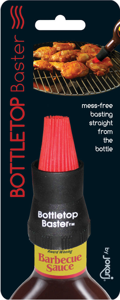 The Basting Brush instantly turns any BBQ sauce, salad dressing or marinade bottle into a handy basting brush. Use on glass or plastic bottles. Great for cookouts, camping, picnics and more. The Basting Brush has heat resistant silicone bristles, is reusable and dishwasher safe. Its multi-threaded top fits most sauce bottles, and has a built-in flow control. Dishwasher safe. BPA-free.