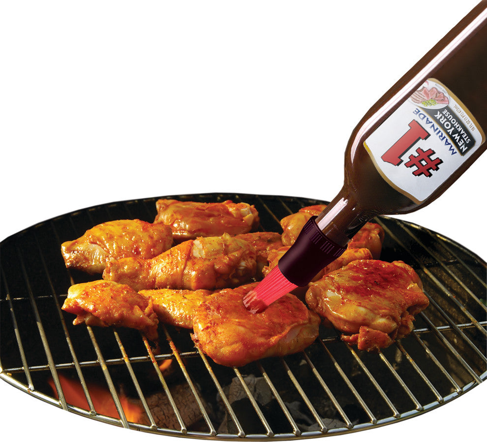 The Basting Brush instantly turns any BBQ sauce, salad dressing or marinade bottle into a handy basting brush. Use on glass or plastic bottles. Great for cookouts, camping, picnics and more. The Basting Brush has heat resistant silicone bristles, is reusable and dishwasher safe. Its multi-threaded top fits most sauce bottles, and has a built-in flow control. Dishwasher safe. BPA-free.