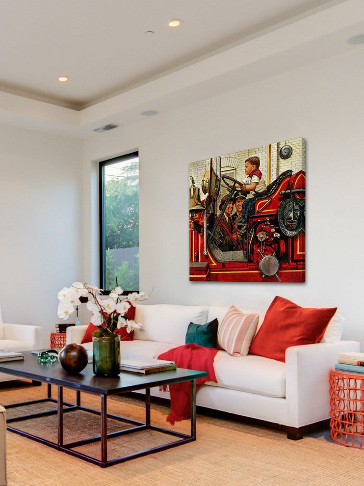 "Boy on Fire Truck" Painting Print on Canvas by Stevan Dohanos