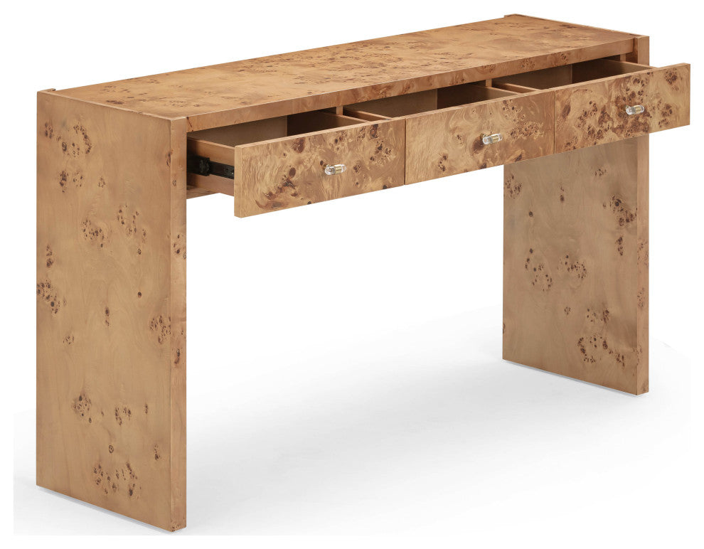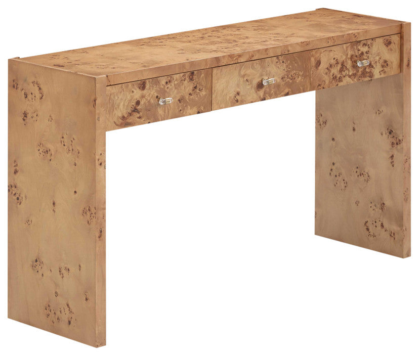 The Brandyss collection is contemporary while maintaining a natural element to its beauty. Crafted from acacia, finished with a swirling burl grain, and featuring rustic brass accents; these beautiful pieces embody textured goodness with yummy neutral tones. Introduce the Brandyss collection to your home and enjoy its clean lines and gorgeous burl pattern from any angle!