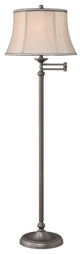 Standard Lamp Specifications for #GM5006:Product Type: Floor LampHeight: 61"Finish: Gun MetalConstruction: SteelSocket: (1) Aluminum 3-way Med. Base Type A 150W Max socket(s). (Bulb(s) not included)Switching: (1) 3-way turn knob switch(es) located on the socket.Cord: 8'' (from base) long clear silver SPT-2 cord set with a 2 prong polarized plug.UL/CUL and/or ETL listed: YesHarp Size: 8.5 inches (including the saddle)Standard Packing: 1 per carton (shade packed separately).Lamps & Shades per SKU: 1Lamping: (1) Aluminum 3-way Med. Base Type A 150W Max socket(s).Shade Size and Description: Grey Silk Drum bell shade with Black underfold trim measuring 13" x 17" x 11" w/ .5" drop (Top x Bottom x Slant).Bulb Included: NoMaterial Description: constructed from polished, plated, and lacquered steel.