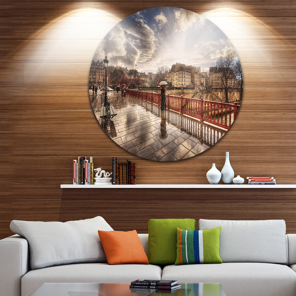 Bridge In Rain, Landscape Photo Round Metal Wall Art, 23"