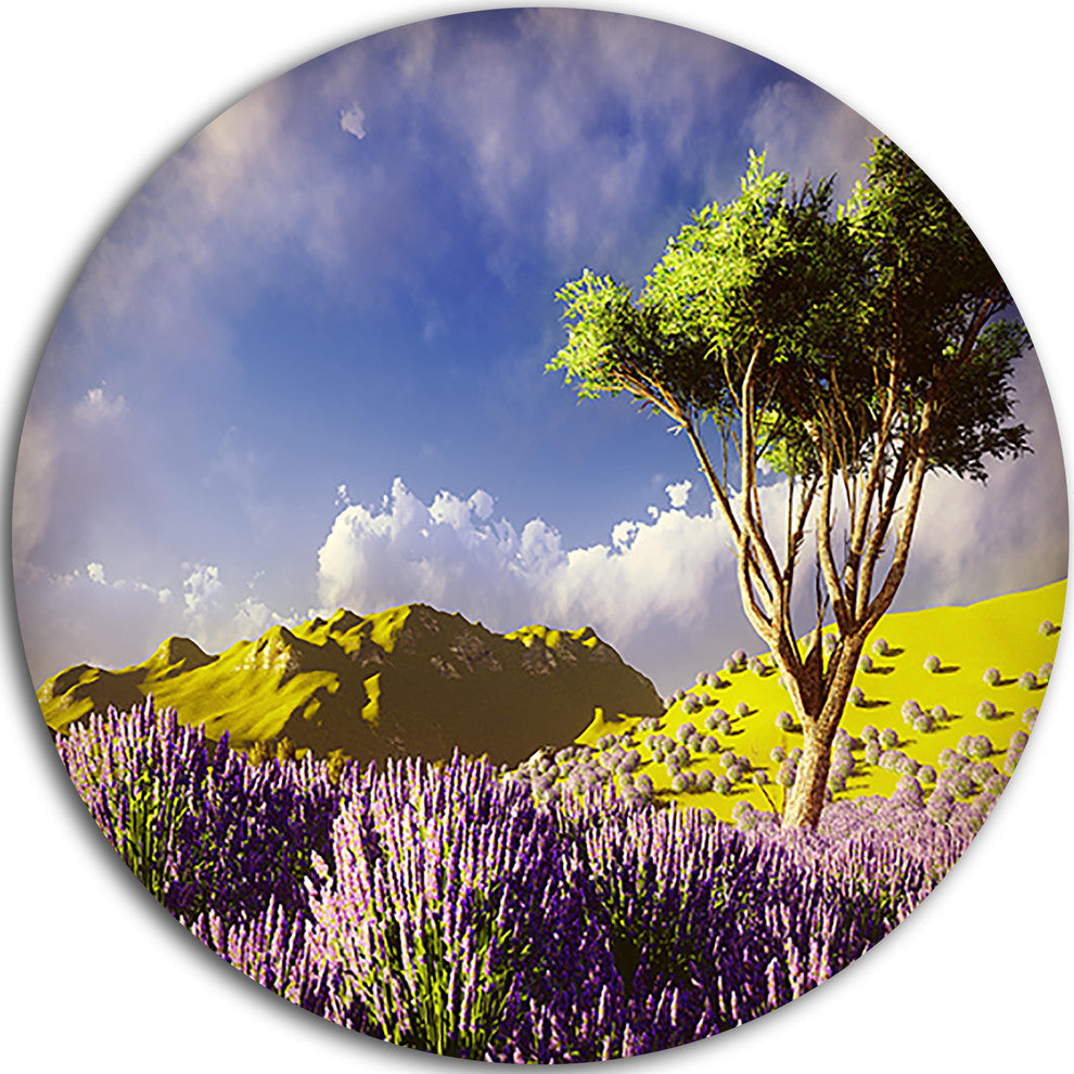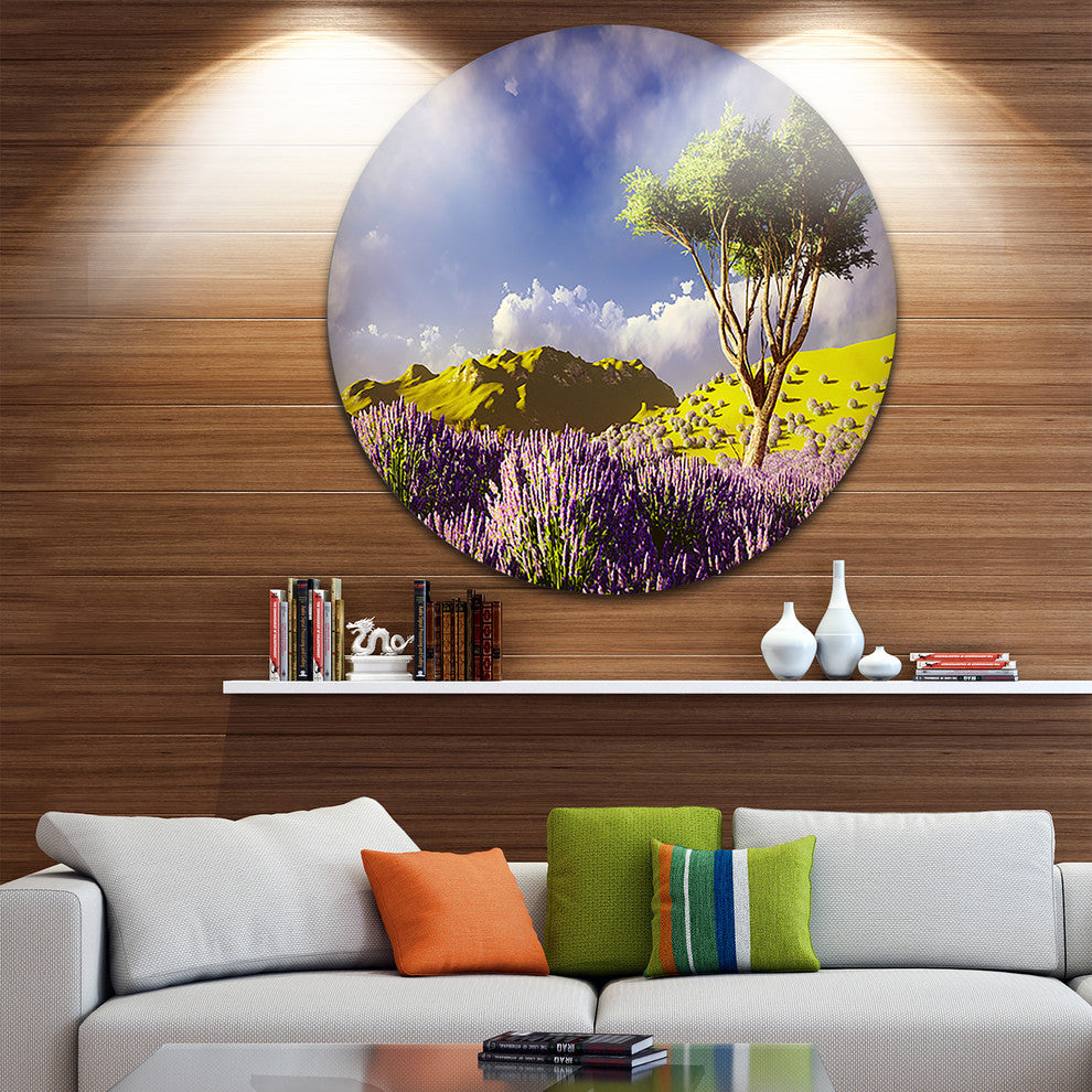 Bright Lavender Garden Field, Modern Landscape Round Wall Art, 36"