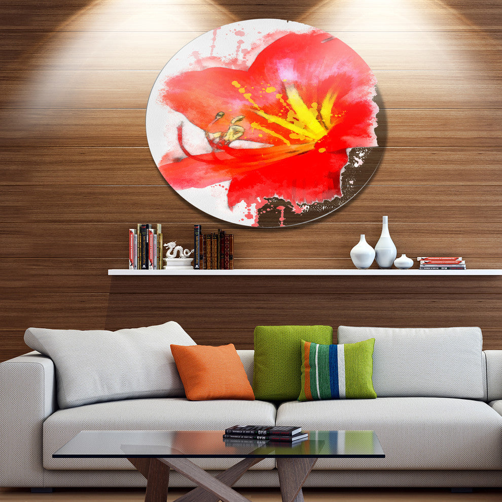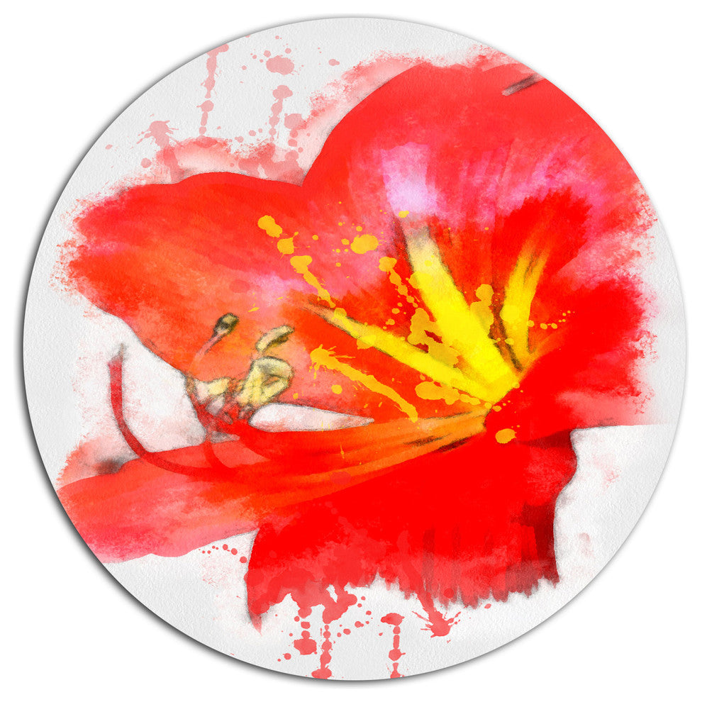 Bring Contemporary Abstraction to your home with this large Circle Metal wall art. This Bright Red Lily Illustration Art Metal Artwork makes it the focal point of any room or office.
