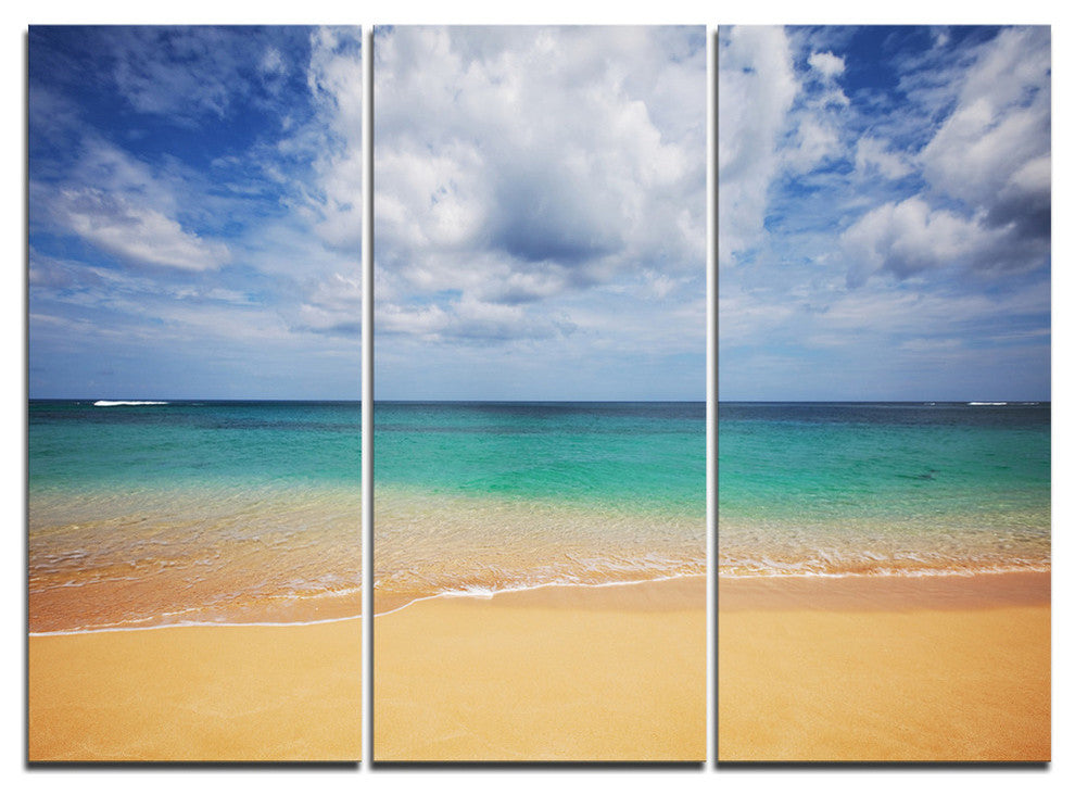 "Bright Seashore With Heavy Clouds" Beach Metal Wall Art, 3 Panels, 36"x28"