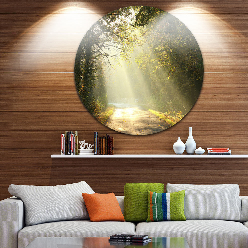 Bright Sunbeams To Fall Forest, Landscape Photo Round Wall Art, 23"