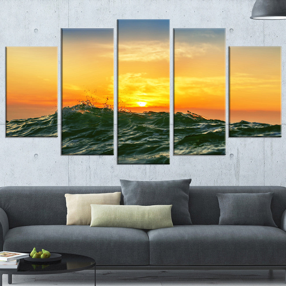 The Bright Sunlight and Glowing Waves canvas art print is sure to make an impression on anyone who sees it. This artwork is gallery wrapped around a 1-inch solid wood frame and arrives carefully packaged and entirely ready to hang on the wall. Design Art only uses the highest resolution and pigments to ensure a crisp colorful print that is never faded or pixelated. This artwork is sure to be a conversation starter in any home or office.