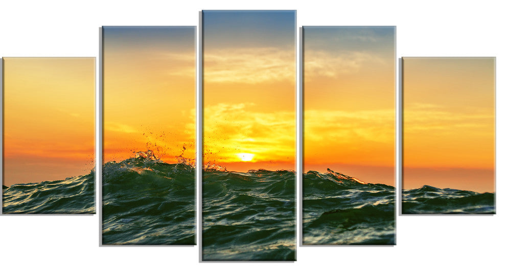 "Bright Sunlight and Glowing Waves" Beach Canvas Wall Art, 5 Panels, 60"x32"