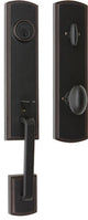 Delaney Hardware Italian Collection Briona Series Residential Single Cylinder Handle Set in Edged Oil Rubbed Bronze. Equipped with security features including reinforced spring assembly, protective collars, high security strike plate, and interlocking installation guides each door handle set is both visually striking and assuredly dependable.