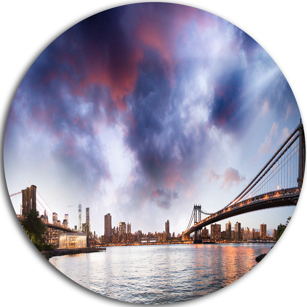Bring Contemporary Abstraction to your home with this large Circle Metal wall art. This Brooklyn Bridge over East River Metal Artwork makes it the focal point of any room or office.