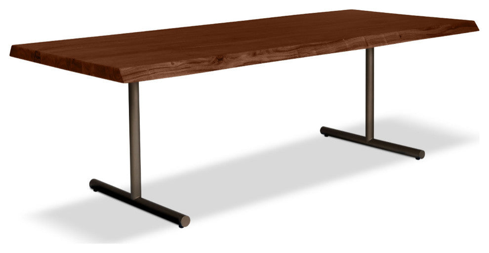 Brooks Dining Table, T Base, 40"x92", Americano Top, Brass Base