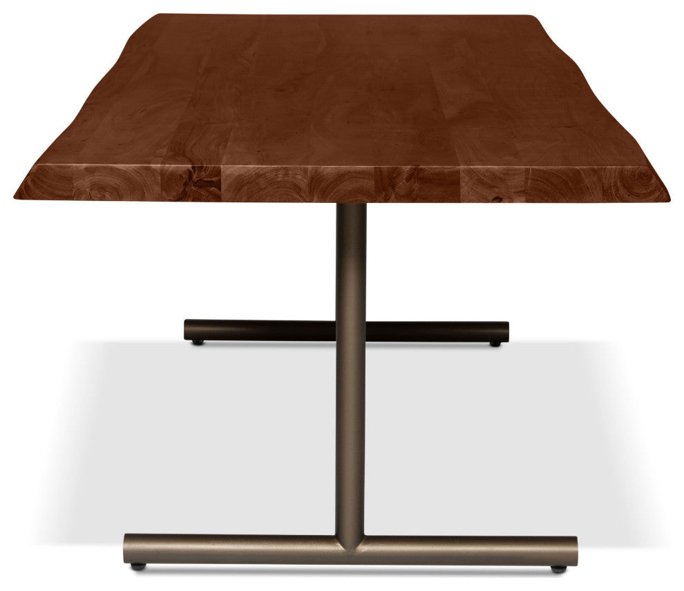 Searching for a modern dining room table that will last for years to come? The Brooks T Base Dining Table is a contemporary table crafted from solid acacia wood and durable aluminum that''s sure to be a great statement piece in your home. Due to the natural wood, each table top will have its own markings and grain pattern.