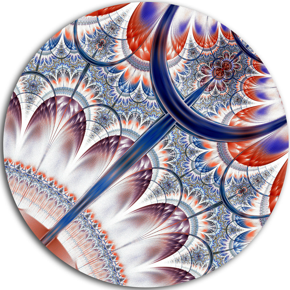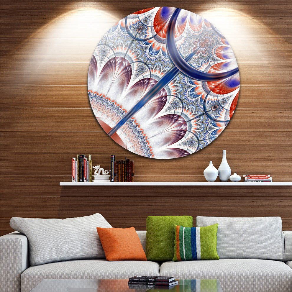 Bring Contemporary Abstraction to your home with this large Circle Metal wall art. This Brown Blue Fractal Flower Pattern Metal Artwork makes it the focal point of any room or office.