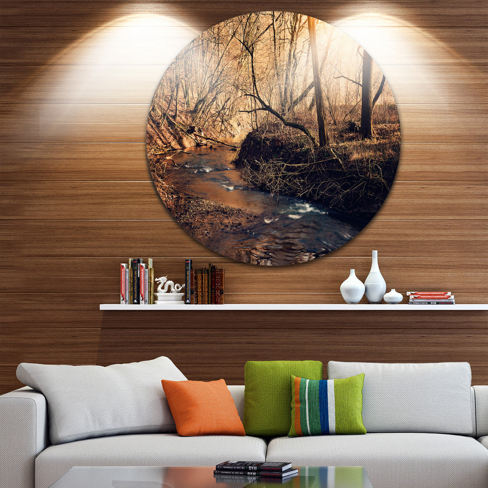 Brown Creek In National Park, Modern Forest Round Metal Wall Art, 36"