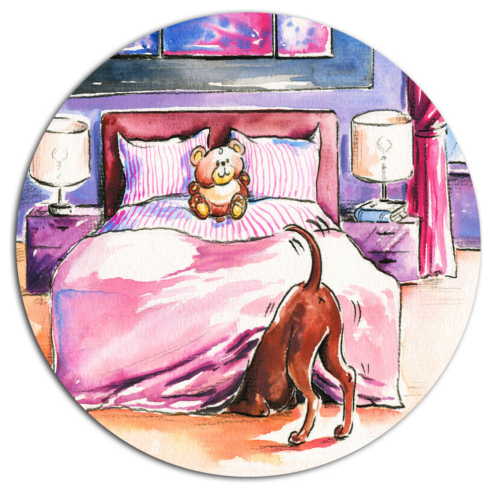 Brown Dog In Bedroom, Animal Disc Metal Wall Art, 23"