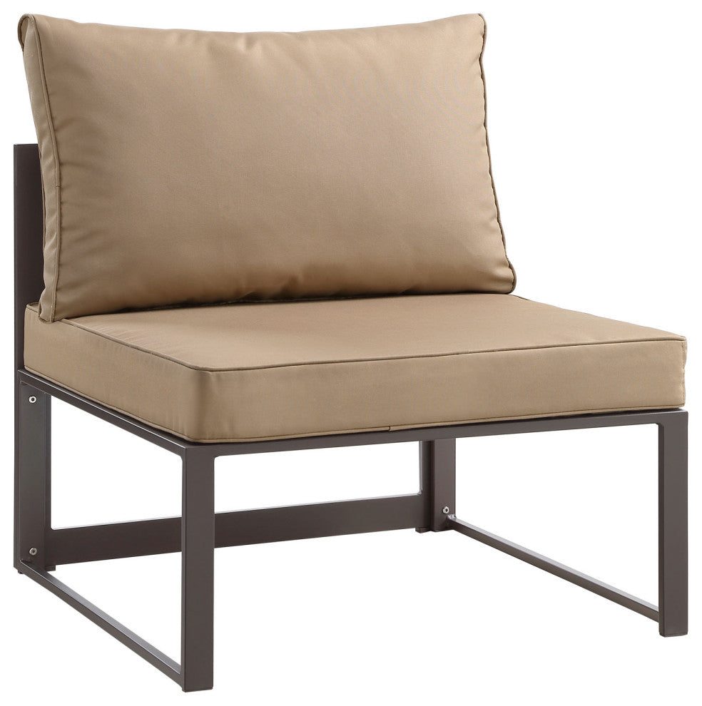 Nestled within close proximity to forests, rivers, valleys, and the Pacific Ocean rests the Fortuna Outdoor Series. Enjoy the good life with an engaging arrangement that makes it easy to enjoy conversations together with friends and family. Made of powder-coated aluminum with all-weather polyester cushions, Fortuna appeals to the modern palate without overwhelming the senses. The Fortuna Outdoor Series is perfect for contemporary patios, backyards, poolsides, and other outdoor lounge area.Set Includes:One - OttomanOne - Side tableThree - CenterThree - Corner Overall Product Dimensions: 90"L x 120"W x 32.5"HOverall Center Dimensions: 29"L x 30"W x 32.5"HSeat Cushion Dimensions: 29.5"L x 29.5"W x 4"HBack Cushion Dimension: 29.5"L x 3"WFrame Dimension: 1.5"L x 1/2"WBackrest Frame Dimension: 2"L x 1/2"WOverall Side Table Dimensions: 29.5"L x 29.5"W x 16.5"HTable Top Dimension: 29.5"L x 29.5"W x 1/16"HTable Legs Dimension: 27.5"L x 24"W x 15.5"HTable Legs Thickness: 1/2"L x 2"WOverall Ottoman Dimensions: 30.5"L x 29.5"W x 15 - 16.5"HOverall Corner Dimensions: 30"L x 30"W x 26.5 - 32.5"H Product Materials: 100% POLYESTER FABRIC (MOCHA 01084), Plastic Guides, Assembly Required, Max Chair Weight 331Lbs; cushion density is 24kg/m3