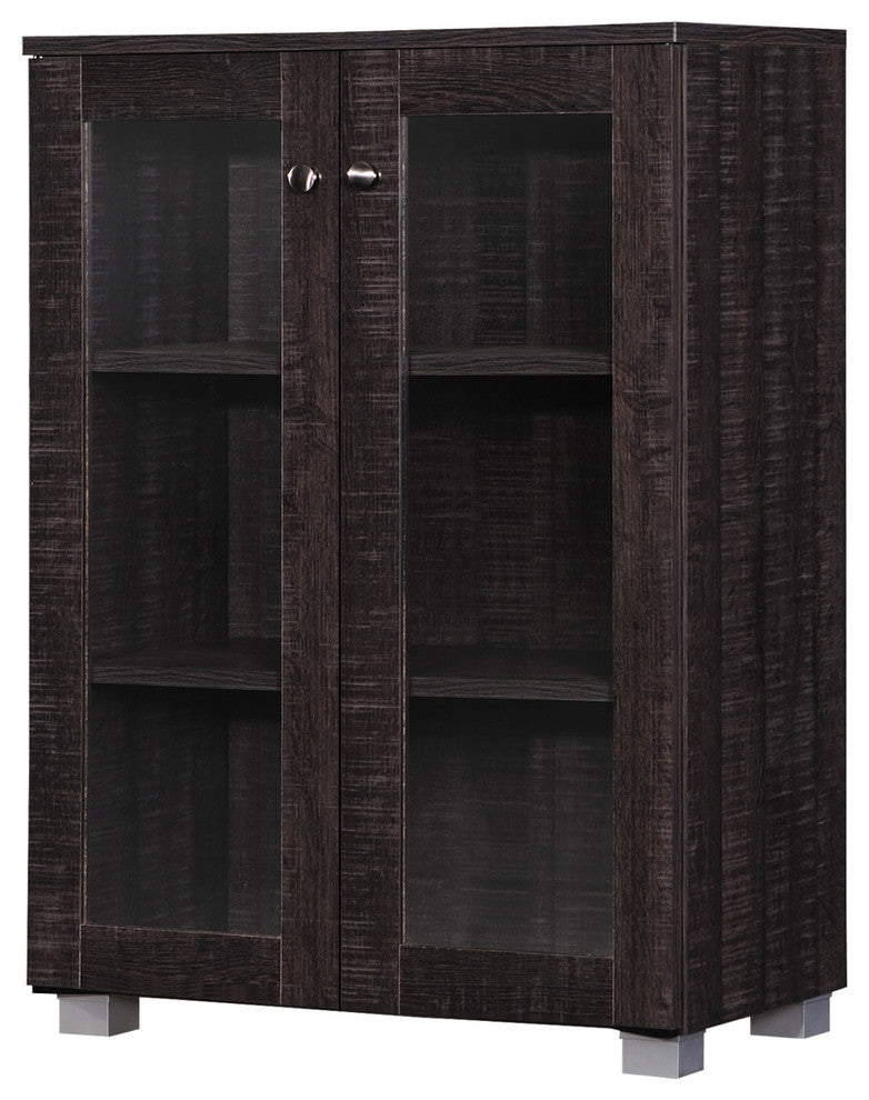 Enjoy the contemporary look of the minimal trend using the Mason Dark Brown Multipurpose Storage Cabinet Sideboard with Two Class Doors, a simple and elegant storage unit that blends easily in a wide variety of modern interiors. Combining the smooth and delicate aesthetic of dark brown espresso MDF with the modern reflections of glass doors, Mason Multipurpose Storage Cabinet Sideboard is a great addition for a clean, contemporary setting. The cabinet incorporates three shelving areas and two glass doors featuring metal round handles and PVC legs. Attractive, resilient and durable, the Mason Multipurpose Storage Cabinet Sideboard is an ideal feature piece that adds functionality to modern living room, home office and entryway. Made in Malaysia, the Mason Multipurpose Storage Cabinet Sideboard requires assembly.