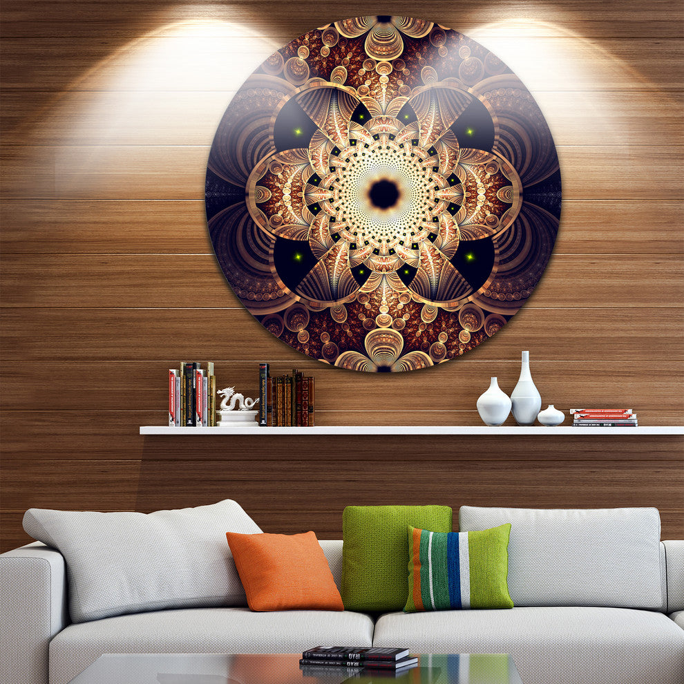 Bring Contemporary Abstraction to your home with this large Circle Metal wall art. This Brown Red Fractal Flower Pattern Digital Metal Artwork makes it the focal point of any room or office.