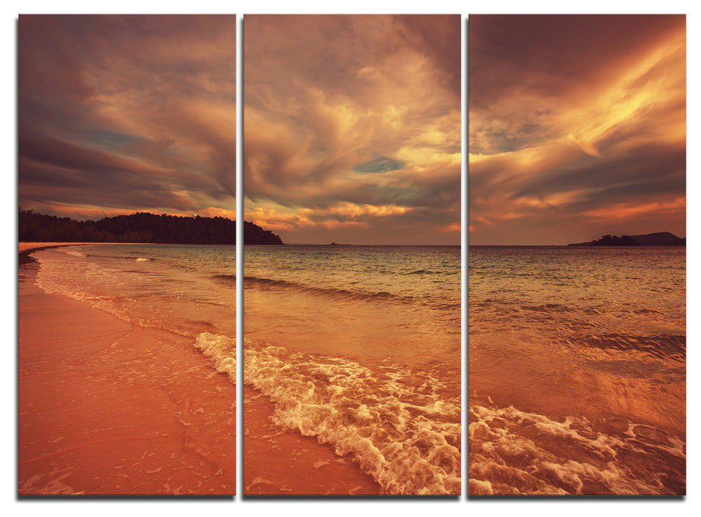 "Brown Serene Tropical Beach" Metal Wall Art, 3 Panels, 36"x28"