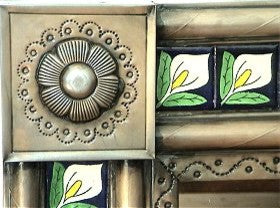 Mexican Talavera ceramic is the result of a mixture of cultures over the time. The Spaniards were influenced by Arabic pottery, they brought it to Mexico and the mixture of cultures gave as result these beautiful art in tin and ceramic. This tin mirror and talavera tile is just an example of the exquisite beauty the Mexican craftsmen put on each item they create. It is handcrafted and the tile handpainted, which means that no two mirrors are the same! There might be small differences in size, weight and even the decorationss. If you want to delight somebody special with a unique handcrafted gift, this is what you are looking for!Hand-hammered and mold-cut to perfectionHandcrafted by Mexico''s Finest ArtisansWe include 1" long brown screws in all of our hammered copper switch plates