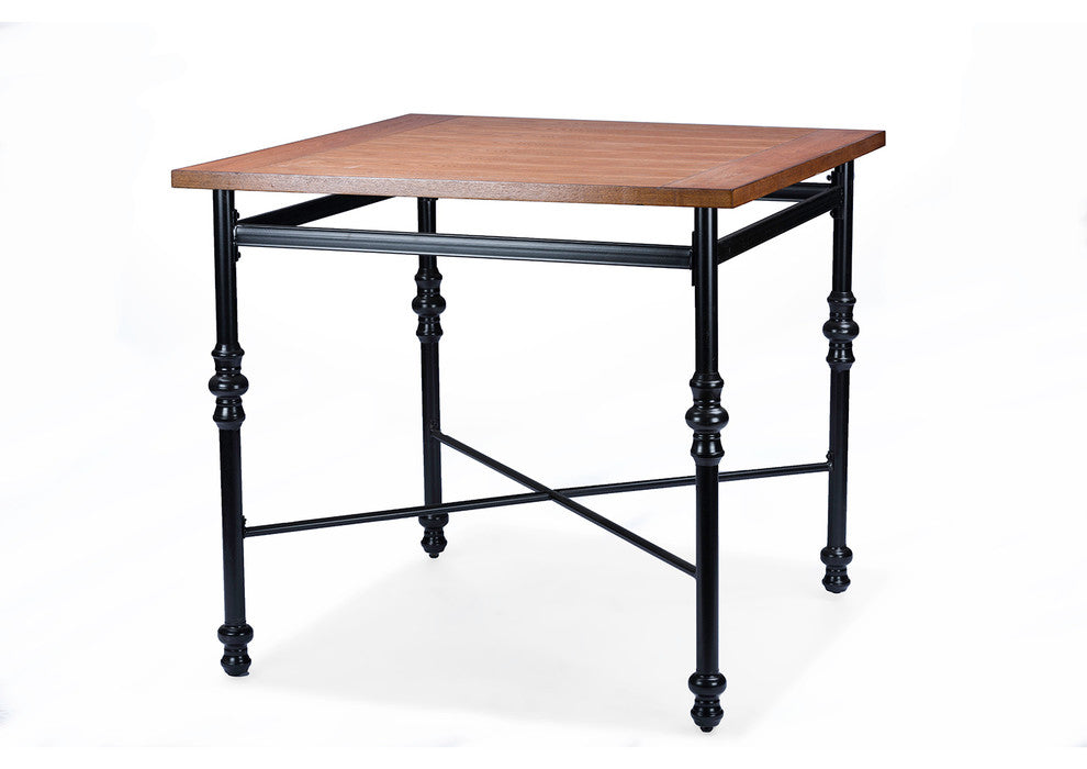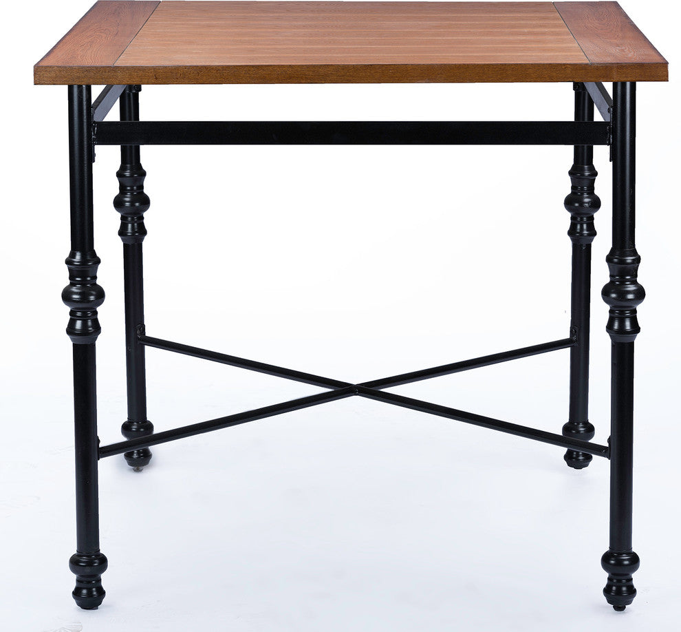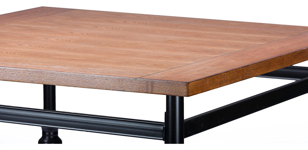 Rustic styling and contemporary flair join as one in our Broxburn Wood and Metal Pub Table. Antique black-finished metalwork and a distressed brown ash veneer wood top convey a vintage-industrial vibe. Sturdy construction ensures years of use.