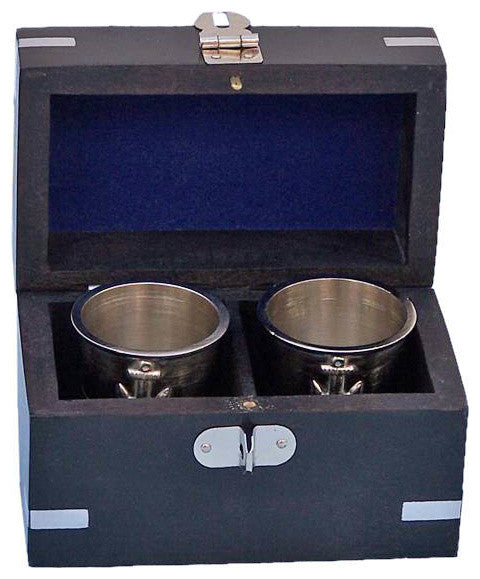 Our Set of 2 - Brushed Nickel Anchor Shot Glasses w/ Rosewood Box 4" gives you a great reason to plan for your next nautical party! Handcrafted by our master artisans, this set of 2 shot glasses displays an anchor on each shot glass. Ideal for nautical enthusiasts and beach-lovers alike, give this gift to those with an affinity for nautical decor. Bottoms up!- Handcrafted from brushed nickel by our master artisans-- The perfect nautical gift for any nautical enthusiast-- Anchor proudly adorns each shot glass-- Rosewood case included for storage--