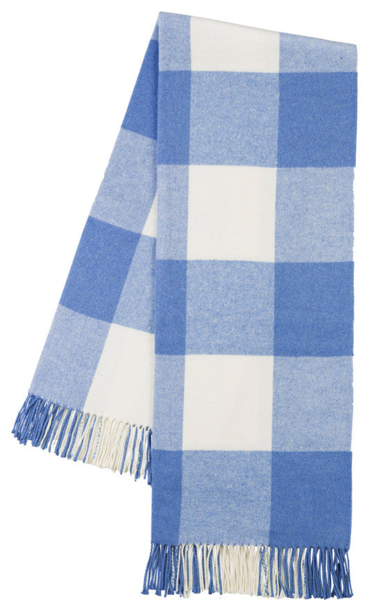 A classic buffalo check design makes this soft, lightweight throw a timeless addition to any living space. Finished with alternating cream and marina fringe.