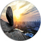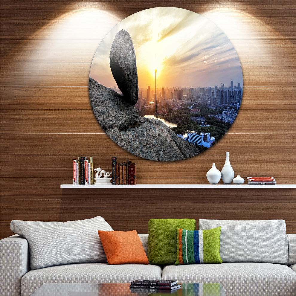Bring Contemporary Abstraction to your home with this large Circle Metal wall art. This Buildings and Crag on Rock Panorama Metal Artwork makes it the focal point of any room or office.
