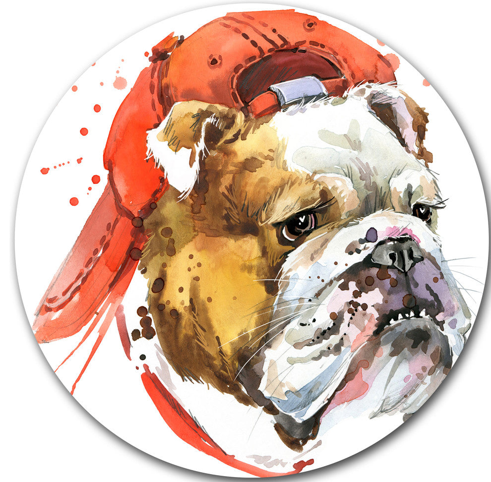 Bulldog Illustration Art, Animal Round Metal Wall Art, 23"
