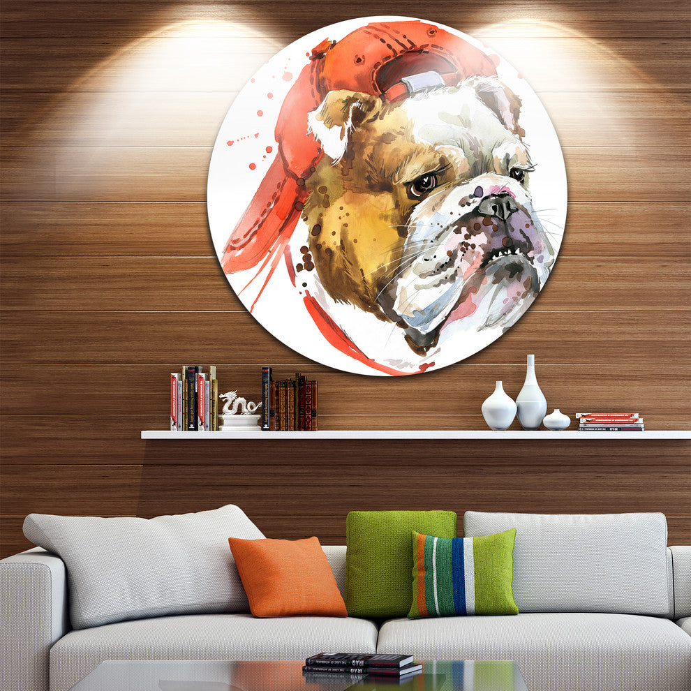 Bulldog Illustration Art, Animal Round Metal Wall Art, 38"