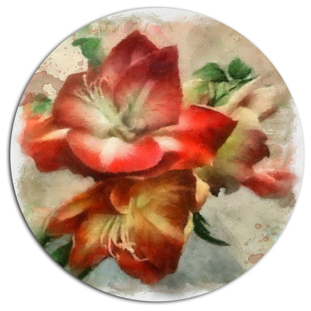 Bunch Of Amaryllis Flowers Drawing, Floral Disc Metal Wall Art, 23"