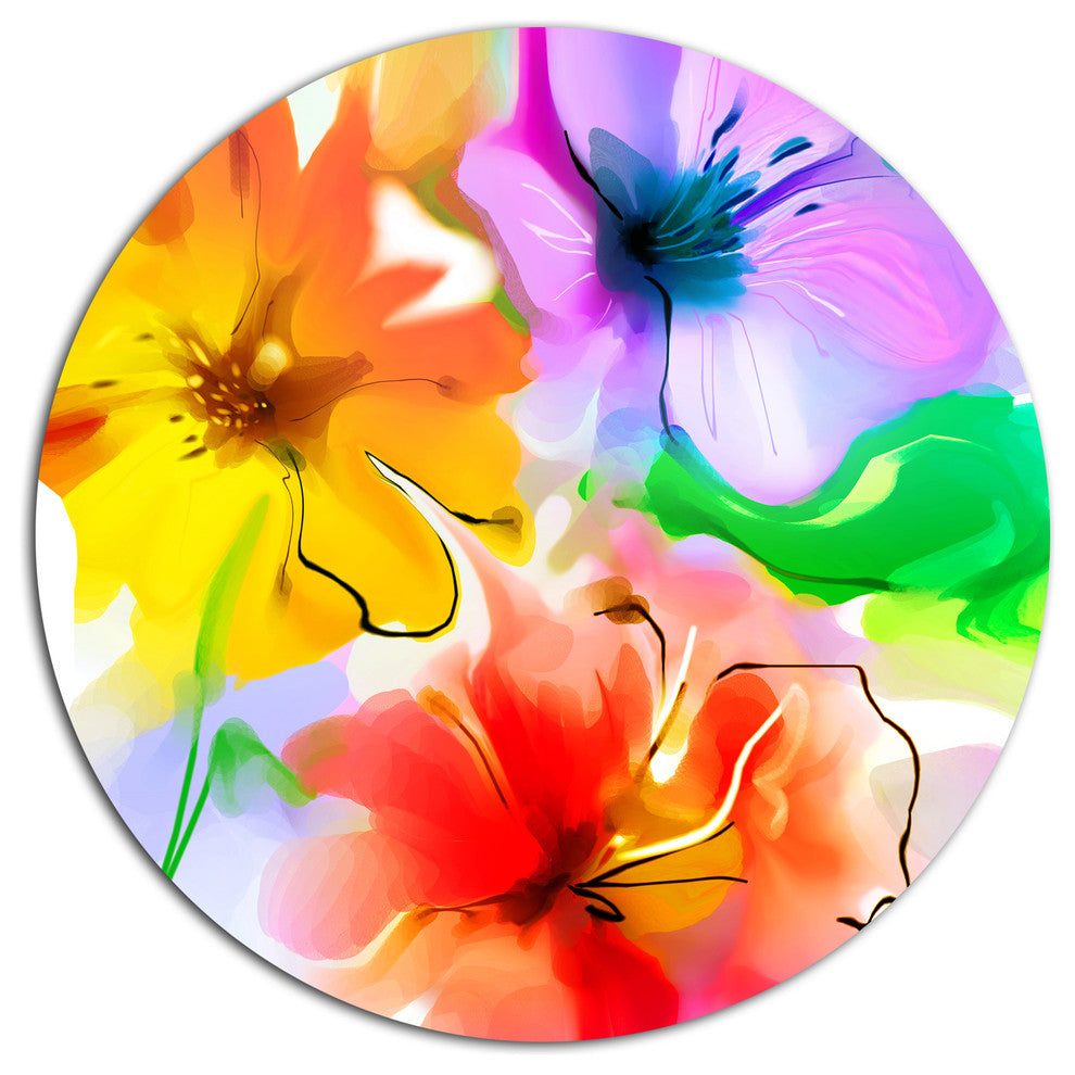 Bunch Of Colorful Flowers Sketch, Floral Large Disc Metal Wall Art, 23"