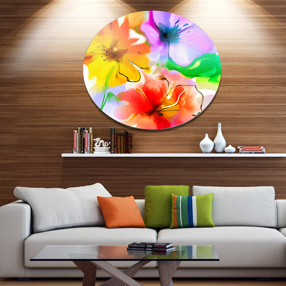 Bring Contemporary Abstraction to your home with this large Circle Metal wall art. This Bunch of Colorful Flowers Sketch Metal Artwork makes it the focal point of any room or office.