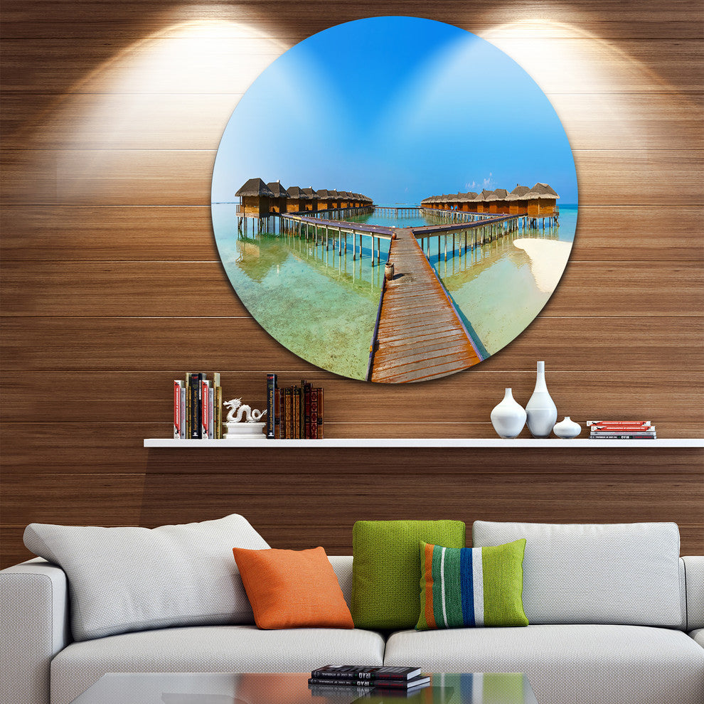 Bungalows In Maldives Island, Landscape Photo Disc Metal Artwork, 36"