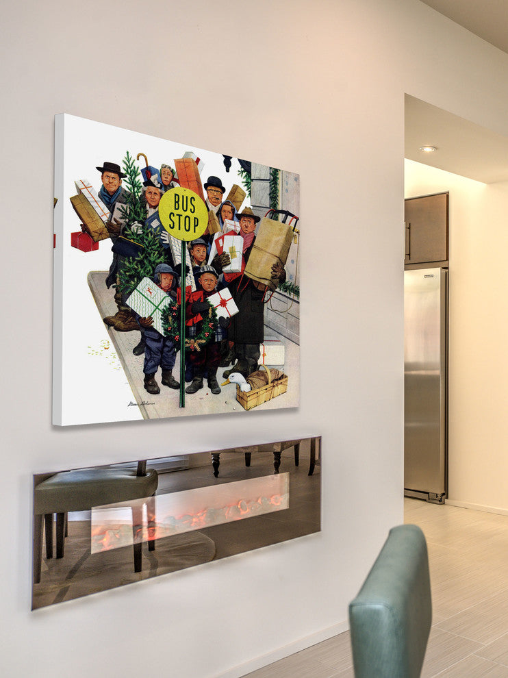 "Bus Stop at Christmas" Painting Print on Canvas by Stevan Dohanos