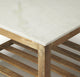 This attractive coffee table is a stunning addition in any rustic modern living room or office. Its slatted base crafted from mango wood solids in an unadulterated natural finish supports a white marble top. Moderately scaled, it is well suited for smaller spaces, but can be bunched in multiples for a more dramatic effect in larger ones., Shelf dim.: 21W, 21D, 11-1/2H, Leg height: 3H