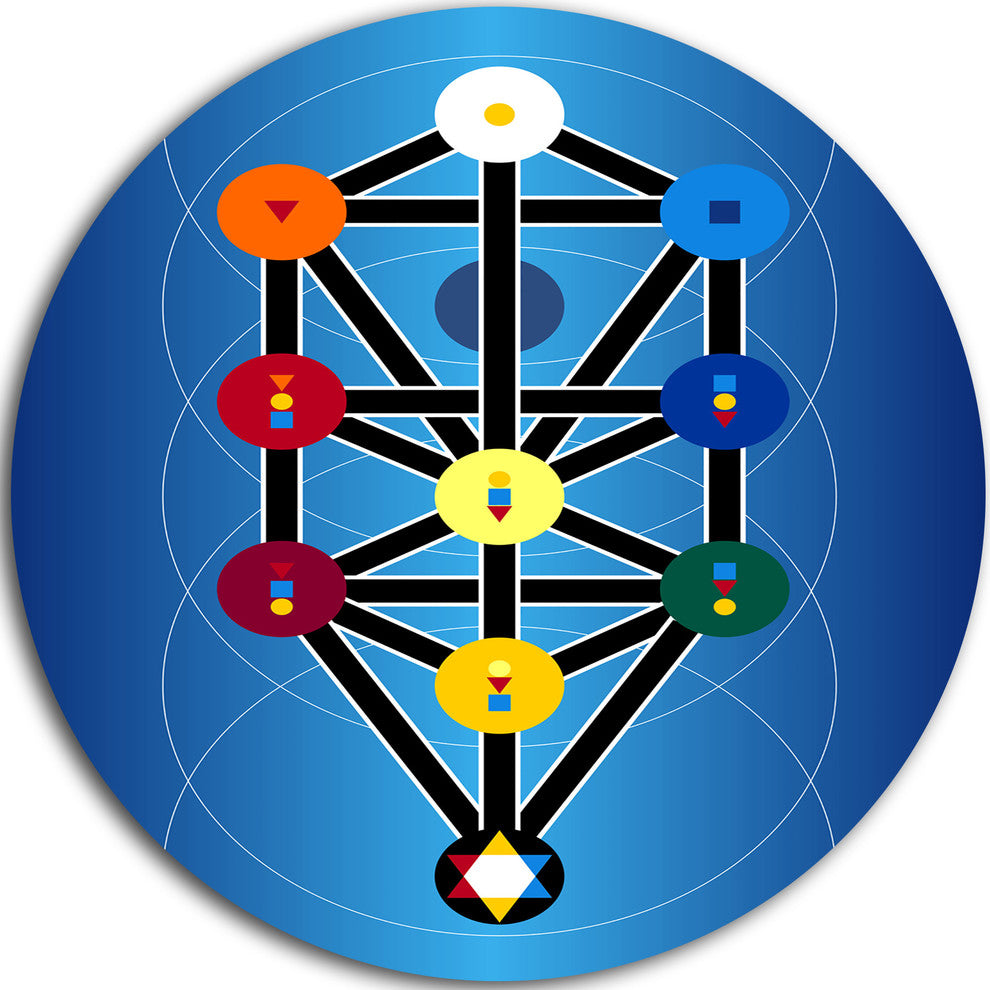 Cabala Jewish Symbols, Modern Digital Art Round Wall Art, 23"