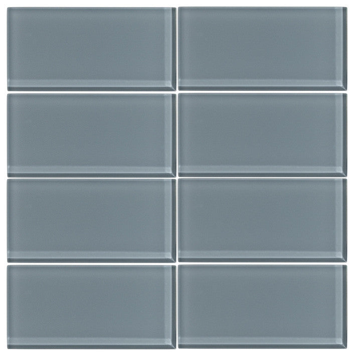 Our Cadet Gray 3x6 glass subway tile is crafted from the highest quality glass using 100% recycled materials. This light gray tile with blue undertones is unique to our line up. Each tile is hand inspected at the factory and in-house before shipment. Our glass is non-porous and water-resistant, perfect for use in wet or dry conditions.Most 3x6 glass subway tiles are simply painted on the back without a protective covering, this leads to imperfections, scratches, and defects throughout. Your kitchen is the most important space in your home - don''t settle for inferior, low-quality products. Our tiles are hand crafted using special techniques that consist of first painting the back with the desired color, then protecting the dried paint with a ceramic coating and firing it in a kiln. This process is what sets us apart from the competition and makes our products so unique and our quality unmatched. All glass subway tiles are sold in 1 square foot increments. Samples consist of 2 pieces of tile. Each square foot is made up of 8 tiles measuring 3" x 6" each. These are not on a sheet, they are sold loose so you can create your own pattern and ensure perfect grout lines and gaps without restricting you or delaying your project. Specifications:Thickness: 8mm