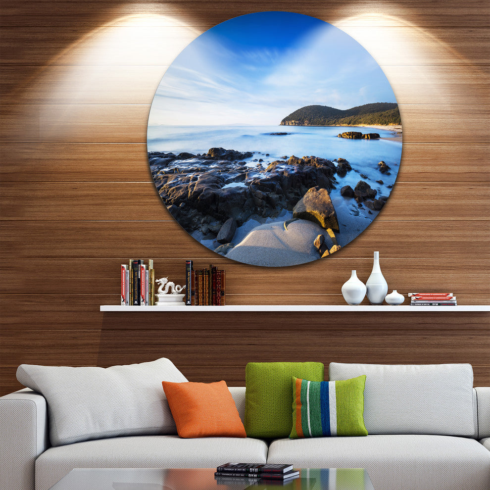 Bring Contemporary Abstraction to your home with this large Circle Metal wall art. This Cala Violina Bay Beach in Maremma Metal Artwork makes it the focal point of any room or office.