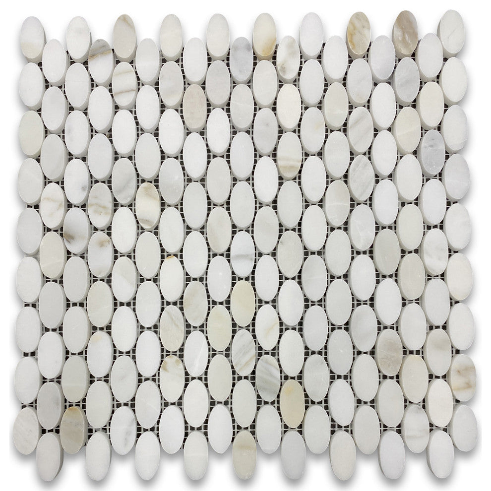 Calacatta Gold Calcutta Marble Ellipse Oval Mosaic Tile Honed, 1 sheet