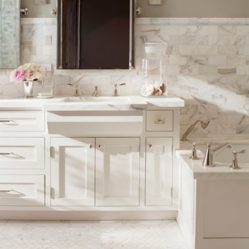 Premium Grade Oval Pattern Calacatta Gold Marble Mosaic Tile. Italian Calacatta Oro Calcutta Gold Borghini Honed 1 3/4 x 5/8 Ellipse Oval Mosaic Wall and Floor Tiles are perfect for any residential / commercial projects. The Calacatta Gold Marble Ellipse Oval Mosaic Tile can be used for bathroom flooring, shower surround, kitchen backsplash, corridor, spa, etc. Our timeless Matte Calcutta Gold Borghini Marble Ellipse Oval Waterjet Mosaic Tile with a large selection of coordinating products is available and includes white marble hexagon, herringbone, basketweave mosaics, 12x12, 18x18, 24x24, subway tile, moldings, borders, and more.