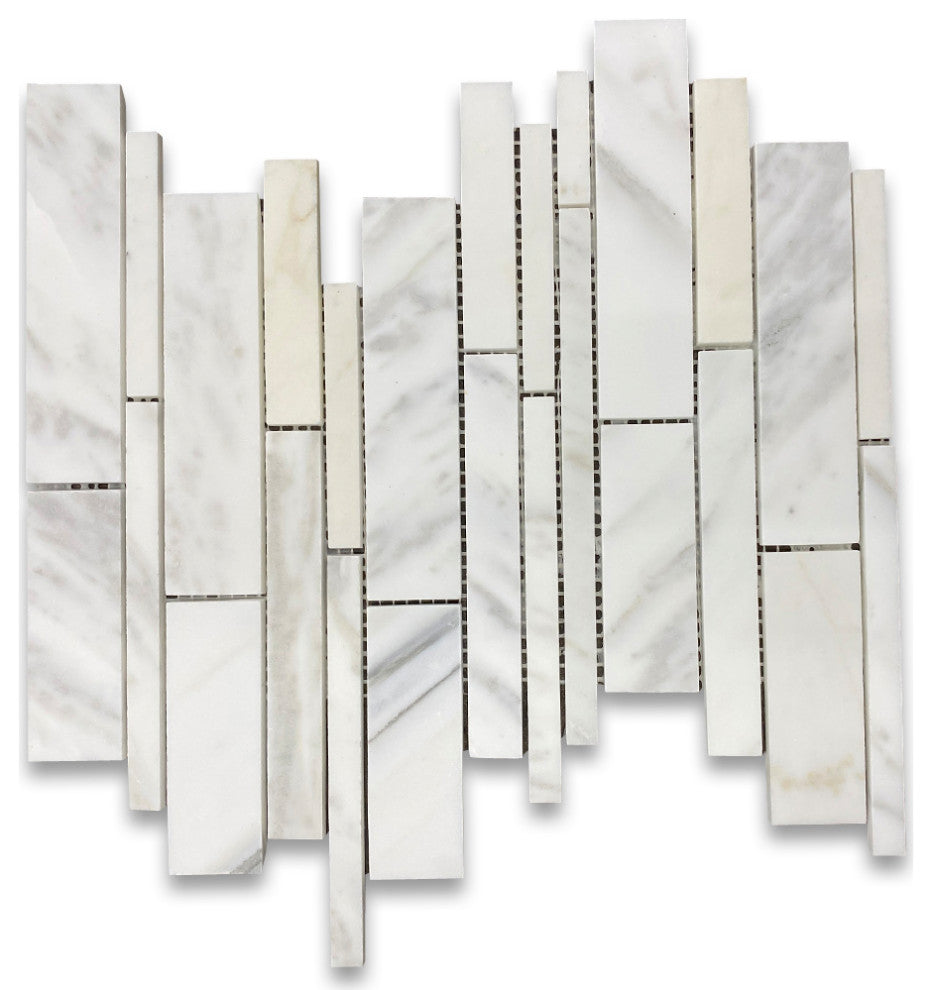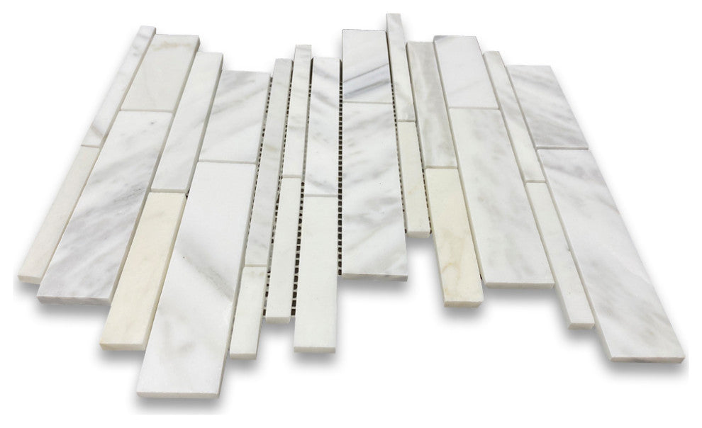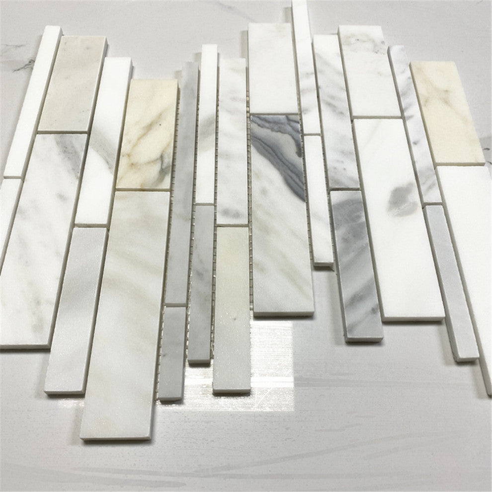 Calacatta Gold Calcutta Marble Random Strip Mosaic Tile Honed, 1 sheet