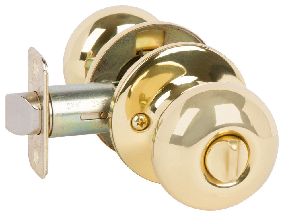 Enhance the details of your home with this stylish, traditional Privacy Knob Set. This piece features a beautiful bright brass color and will add the perfect accent to any room. This piece measures 2 inches wide by 2 inches deep by 2 inches tall.