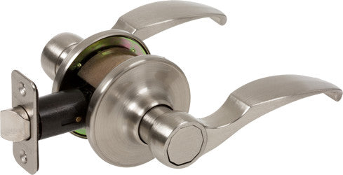 Callan2 Kendall Series Grade 2 Privacy Lever Set in Satin Nickel. Equipped with Grade 2 security features including reinforced spring assembly, protective collars, and interlocking installation guides each door handle set is designed for ease of use as well as high security