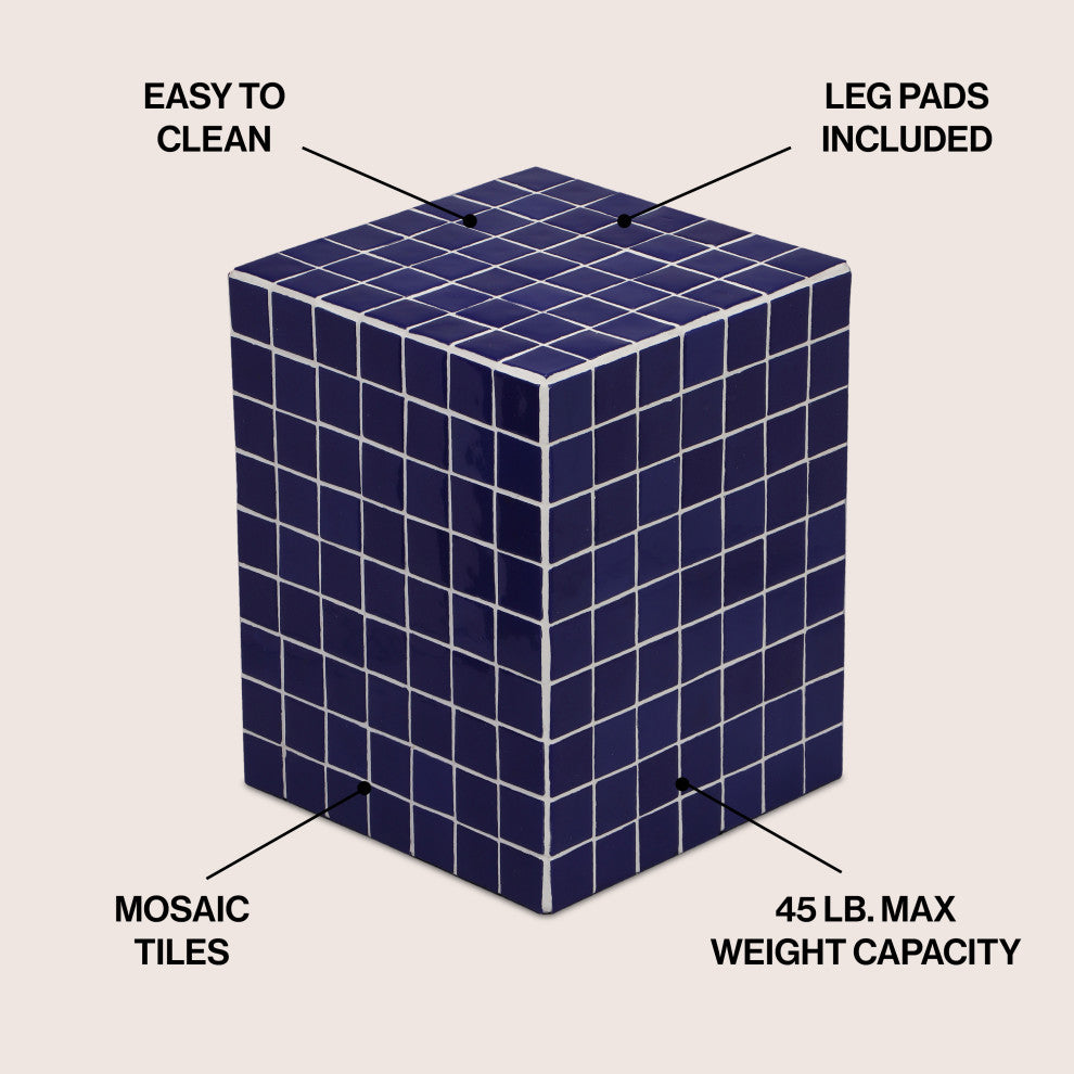 Embrace Maximalism with our modern, Bohemian-chic checkerboard accent table. The sturdy MDF cube is finished with 2" ceramic tiles. Use this versatile accent as a nightstand, or a pedestal for your favorite plant.Features:• Classic navy blue tiles and white caulk lines add Art Deco style to any space• At just 18" tall, this transitional table is the ideal height beside the arm of a chair• This versatile table''s square design works almost anywhere, from a coastal cottage to a modern studio• Each piece is unique and may have slight differences from the photo• Handmade with care by skilled artisans• 0Furniture Care:You see a common piece of furniture.We see a piece that makes outdoor spaces feel more like home.The sanded wood casts a smooth touch on the skin. Derived from durable wood, the JONATHAN Y Outdoor Furniture collection is endowed with the finest quality outdoor tables and chairs. Our vast collection of outdoor furniture fits in both classic and modern outdoor spaces, all in the artful favor of achieving the sought-after relaxing feeling. Along with affordable prices, we''ve transformed a fundamental resting instrument into a stylish addition for outdoor events and gatherings.JONATHAN Y Outdoor Furniture - the resting place of fashionable outdoor art.