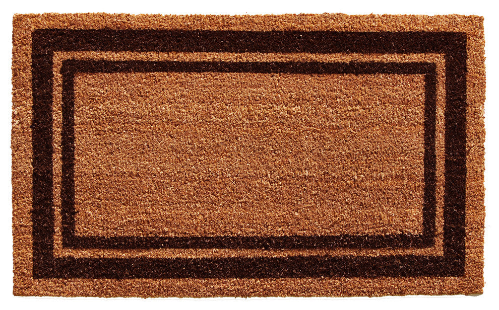 Made of natural coir, a dense fiber that is naturally mold and mildew resistant. Coir is a renewable resource that is durable and coarse, excellent for scraping shoes clean. Vinyl backed for increased durability and to help prevent movement, coir doormats are weather tolerant absorb moisture and retain their shape. For best results keep in a sheltered area such as a covered porch, keeping extreme moisture and sunlight to a minimum. Vacuum, sweep or lightly hose clean.