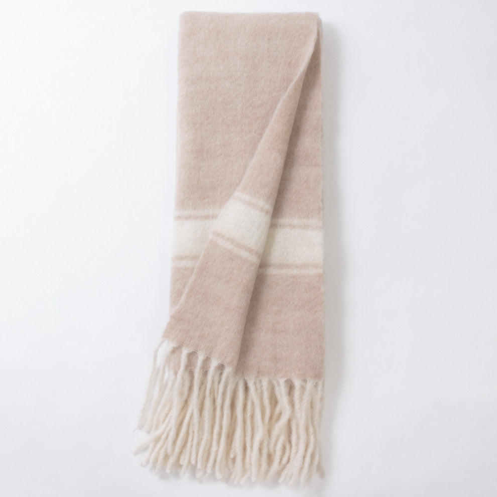 Woven with a classic balanced stripe at each end and felted for a luxuriously soft hand feel. This throw features lengthy tassels at the ends for a flowing look.