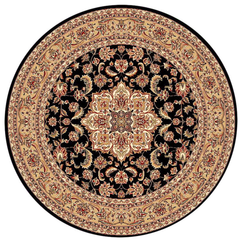 Cambridge 7327 Black/Beige Kashan Medallion 7''7" Round. Machine-Made of 100% Heat-set Polypropelene with No Backing. Made in China. Vacuum regularly & spot clean stains. Professional cleaning recommended periodically.